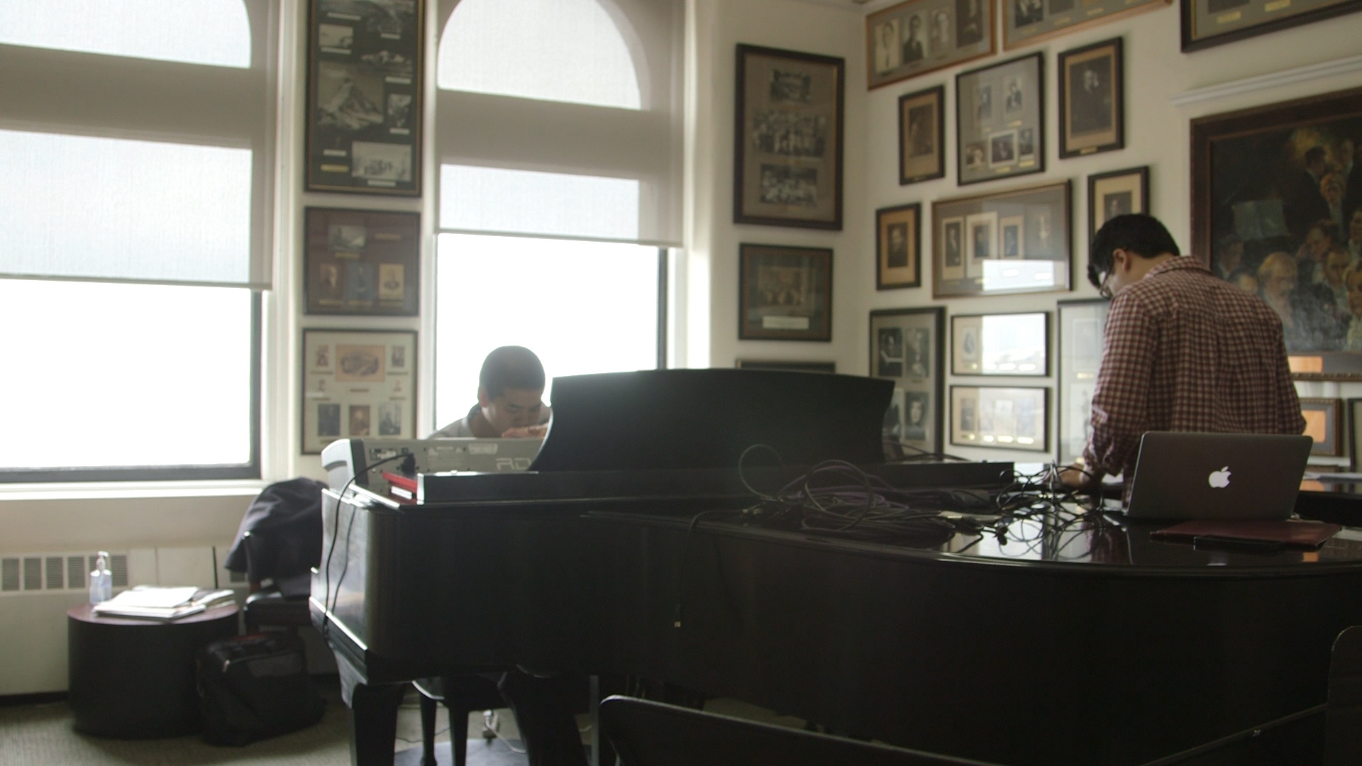 The electronic component features realistic sounding meta-instruments—instruments with an unusually expanded palette for articulation, microtonal inflection, tessitura, resonance, and noise elements. Through the use of hardware “prosthetics”—localized speakers, keyboards, and/or pedals—the solo pianist and obbligato trio trigger digital instrumental simulations (with its new vocabulary of estranged possibilities) that blend in real-time with their acoustic counterpart.